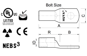 Tin Plated Flag Battery Connectors With Bolt