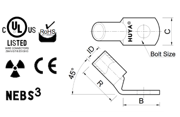 Tin Plated Flag Battery Connectors With Bolt